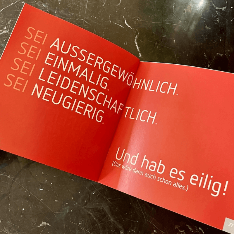 "Sehr ansprechend gestaltet, leicht einzustecken, schnell aufzuschlagen, gut zu bearbeiten. Ein Buch nach meinem Geschmack für zwischendrin in der Bahn, zwischen zwei Meetings, oder für jede andere Stelle und Zeit, zu der man liest. Und dann doch wieder mit so viel Raum für Eigenes, dass das Programm mit dem Buch viel abendfüllender ist, als die wenigen Seiten vermuten lassen."